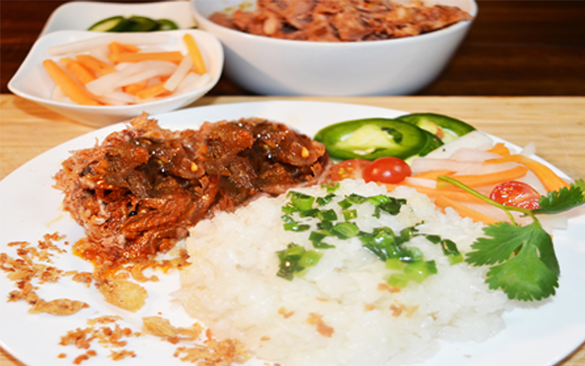 Xôi – with juicy AAA beef with satay – moderate spiciness.